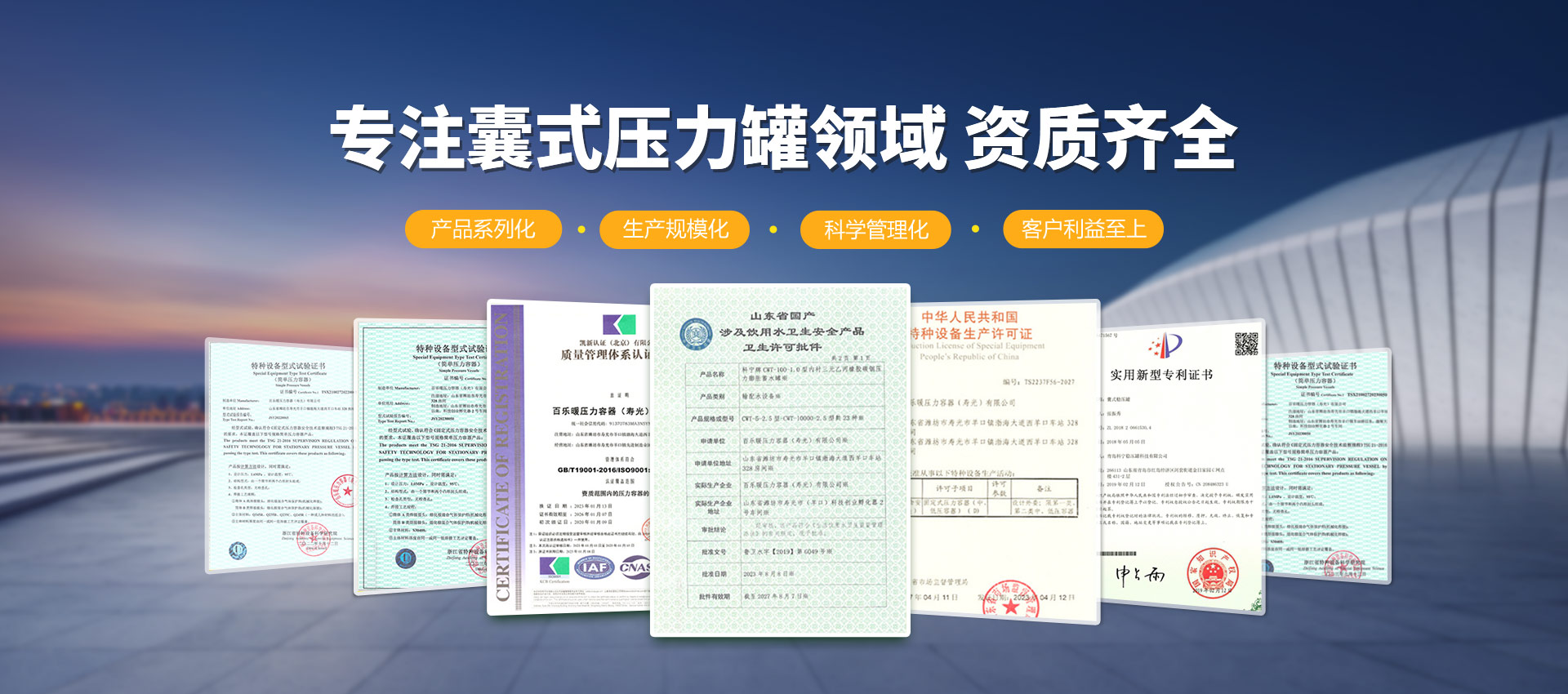 查看詳情 +壽光市科寧壓力容器(壽光)有限公司是專業(yè)從事壓力膨脹罐、空氣/水儲罐、空氣能儲罐、水錘罐、熱能/冷能儲罐、無負壓供水設(shè)備穩(wěn)流罐、耦合罐的研發(fā)、制造、加工、銷售、維修;經(jīng)營國家允許范圍內(nèi)的貨物與技術(shù)的進出口業(yè)務。材質(zhì)有碳鋼、不銹鋼、雙相鋼等。產(chǎn)品主要用于:恒壓變頻供水設(shè)備、無負壓供水設(shè)備、供暖系統(tǒng)、太陽能、地暖、消防、空氣能、空調(diào)、大型供水系統(tǒng)(防水錘)。起到節(jié)能、穩(wěn)壓、防水錘、蓄能、環(huán)保等作用,延長水泵和管道系統(tǒng)的使用壽命,確保供水系統(tǒng)穩(wěn)定運行...